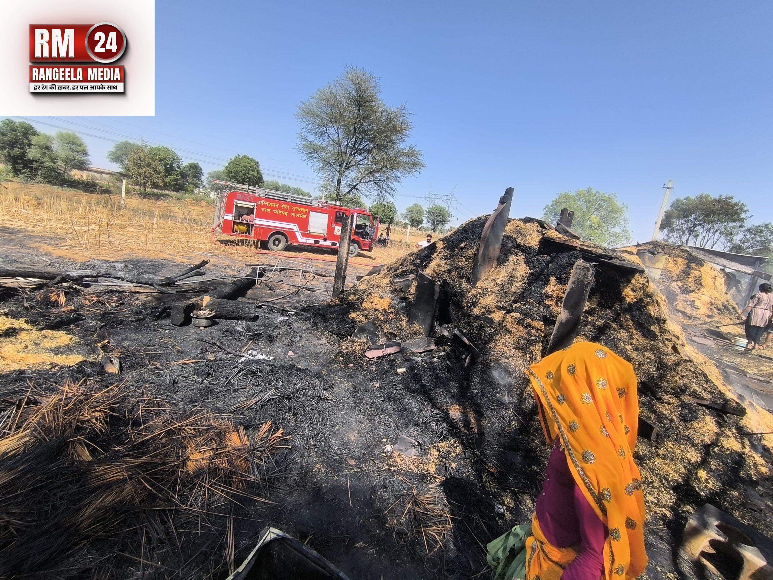 लालसोट के भामुवास गांव में आग लगने से पांच पाटोल पोश ध्वस्त, 7 बकरियां जिंदा जली, लाखों की नकदी, जेवरात, अनाज व चारा आग में हुए स्वाहा