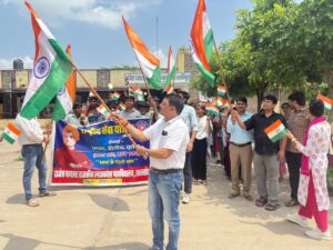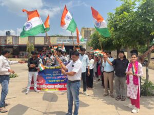 रैली को रवाना करते हुए प्राचार्य डॉ सुभाष पहाड़िया ने अपने संबोधन में कहा कि ‘हर घर तिरंगा’ आज़ादी का अमृत महोत्सव के तत्वावधान में एक अभियान है जिसका उद्देश्य लोगों को तिरंगा घर लाने और भारत की आज़ादी के महापर्व के उपलक्ष्य में इसे फहराने के लिए प्रोत्साहित करना है। एक राष्ट्र के रूप में सामूहिक रूप से झंडे को घर लाना न केवल तिरंगे से व्यक्तिगत जुड़ाव का प्रतीक है, बल्कि राष्ट्र निर्माण के प्रति हमारी प्रतिबद्धता का भी प्रतीक है। इस पहल के पीछे का विचार लोगों के दिलों में देशभक्ति की भावना जगाना और भारतीय राष्ट्रीय ध्वज के बारे में जागरूकता को बढ़ावा देना है। प्रोफेसर डॉ पी एम मीना ने कहा कि हर घर तिरंगा’ अभियान एक जन आंदोलन बन गया है, जिसमें हर कोई एकजुट होकर राष्ट्रीय ध्वज फहरा रहा है। गांवों से लेकर शहरों तक, पूरे देश में लोग तिरंगा फहरा रहे हैं और हमारे देश के लिए बहादुरी से लड़ने वाले स्वतंत्रता सेनानियों के प्रति अपनी कृतज्ञता व्यक्त कर रहे हैं। इस अभियान ने युवाओं और बच्चों को विशेष रूप से प्रभावित किया है और उन्हें भारत के स्वतंत्रता संग्राम की यादों को संजोने के लिए प्रोत्साहित किया है। कार्यक्रम अधिकारी लोकेश कुमार मीना ने बताया कि छात्र- छात्रा और महाविद्यालय स्टाफ हाथों में तिरंगा लहराते हुए और देशभक्ति के नारे लगाते हुए महाविद्यालय परिसर से जमात चौराहे तक रैली के रूप में आए और वापस महाविद्यालय परिसर में रैली का समापन हुआ। इस अवसर पर कार्यक्रम अधिकारी श्री राकेश कुमार मीना, सुश्री भारती चतुर्वेदी, सह आचार्य श्री हनुमान प्रसाद मीना, डॉ एच के सिंह, सहायक आचार्य डॉ जितेन्द्र कुमार बैरवा, श्रीमती प्रिया भारती शर्मा, डॉ मोहन लाल खटीक, श्रीमती कांता मीना, रोवर लीडर राम भरोसी बैरवा, रेंजर लीडर श्रीमती साक्षी मीना, सहायक आचार्य सुश्री गायत्री पांडिया, सुश्री डॉ नेहा राघव सहित सभी अधिकारी कर्मचारी एवम् छात्र – छात्रा उपस्थित रहे।