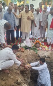 इस अवसर पर आचार्य कृपाचार्य सहित अन्य विद्वान पंडितों द्वारा विधिवत पूजा एवं मंत्रोच्चार करते हुए निर्माण कार्य की मंगल कामना करते हुए शुरुआत की गई।