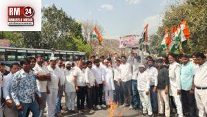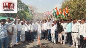 लालसोट में रसोई गैस की किल्लत को लेकर कांग्रेस का पैदल मार्च, प्रधानमंत्री का जलाया पुतला