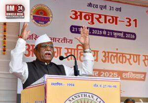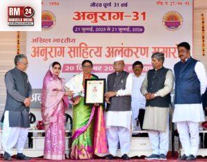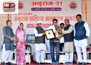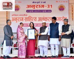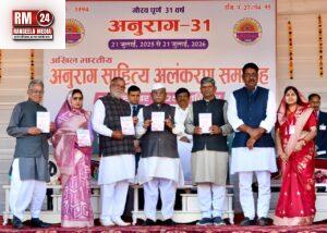 इससे पूर्व राज्यपाल हरिभाऊ बागड़े एवं अन्य अतिथियों ने अनुराग सेवा संस्थान के 31 वर्ष पूर्ण होने के उपलक्ष्य में आयोजित अखिल भारतीय अनुराग साहित्य अलंकरण समारोह में विभिन्न राज्यों से चयनित 31 साहित्यकारों को शॉल ओढ़ाकर एवं स्मृति चिह्न प्रदान कर सम्मानित किया।