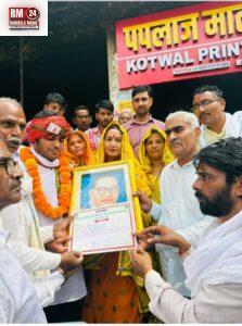 लालसोट. मीना सोशल वेलफेयर समिति के पदाधिकारियों ने शनिवार को पलाज माता मंदिर परिसर पहुंचकर आदिवासी संस्कृती का कई देशों में प्रचार प्रसार करने वाली मीना समाज की महिला धोली देवी एवं उनके पति लोकेश मीणा का माला व साफ़ा बंधवाकर एवं पीली लुगड़ी उड़ाकर सम्मान किया गया। इस दौरान धोली मीना ने कहा कि हमारी संस्कृति ही हमारी पहचान है और इसे बचाए रखना हम सबकी जिम्मेदारी है। इस दौरान सोसाइटी के अध्यक्ष रामखिलाड़ी मीणा, मीणा समाज तहसील अध्यक्ष हीरालाल बगड़ी,समाजसेवी रामावतार जोरवाल,संरक्षक बृजमोहन मीना नगरियावास, हरिप्रसाद मीणा, लक्ष्मीचंद मीणा एवं ंअनीता मीणा ने बाबा साहेब डॉ.भीमराव अंबेडकर की प्रतिमा भी भेंट की।